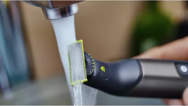 De OneBlade is volledig waterdicht (IPX7) en is dus gemakkelijk schoon te maken: gewoon onder de kraan afspoelen. U kunt zich nat of droog scheren, zelfs onder de douche – wat u maar wilt. Geen scheerschuim nodig.